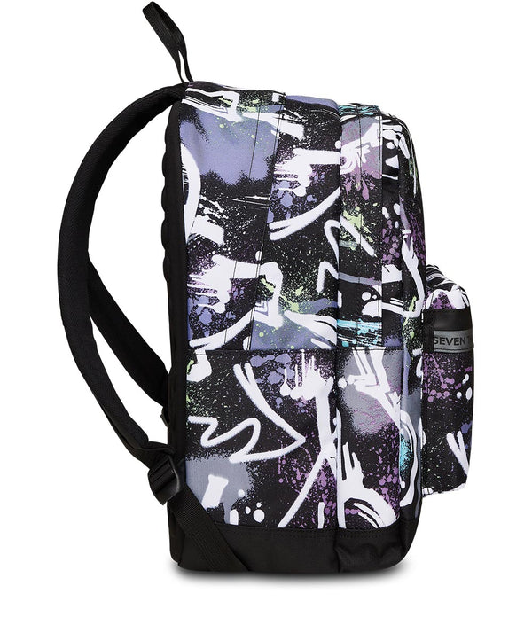 In dem Rucksack Pro XXL Seven The Double mit zwei geräumigen Fächern und reflektierendem Reißverschluss findet alles sein Platz. Das Tragen ist sehr angenehm dank des vorgeformten EVA-Rückens und der gepolsterten Schultergurte mit atmungsaktiven Einsätzen. Darüber hinaus gehören auch die Kopfhörer zum Rucksack und zu guter Letzt besteht das Gewebe des Rucksacks aus 27 PET-Flaschen, das auch GRS-zertifiziert ist.