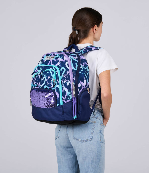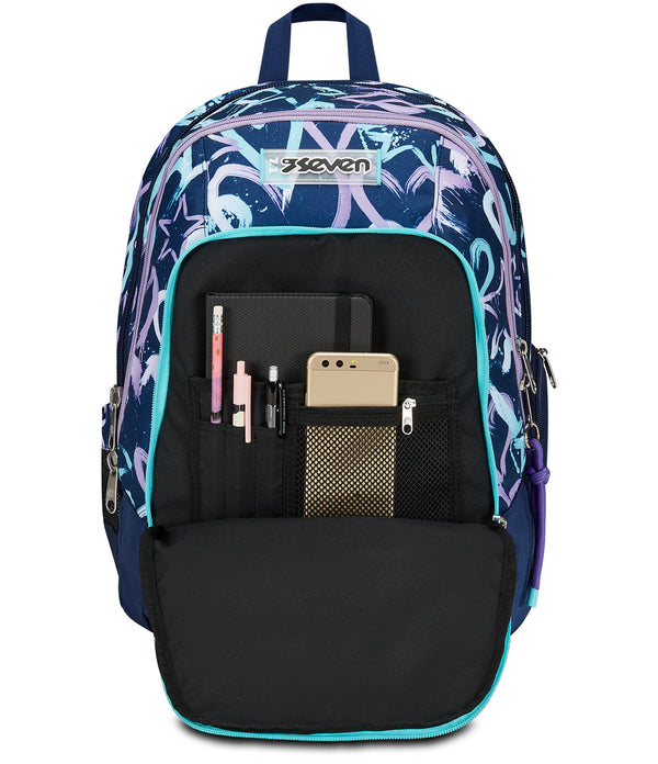 Schule, Sport, Freunde – du brauchst einiges, um gut durch den Tag zu kommen. Der Seven Advance Rucksack bietet Platz und eine schlaue Einteilung, um dich bestmöglich zu unterstützen: ein Doppelfach für Bücher, Hefte und mehr, auch für Wechselkleidung nach dem Training ist genügend Platz. Dazu kommen ein separates Fach für Laptop oder Tablet sowie die Außentasche mit Organizer, in der ein Kalender, Kopfhörer und kleinere Gegenstände gut aufgeräumt sind. Der Seven Advanced Rucksack hält seine Form, auch wenn Du ihn richtig vollpackst, dafür sorgt der stabile Boden. Die Schultergurt- und Rückenpolsterung machen Dir das Tragen angenehm.