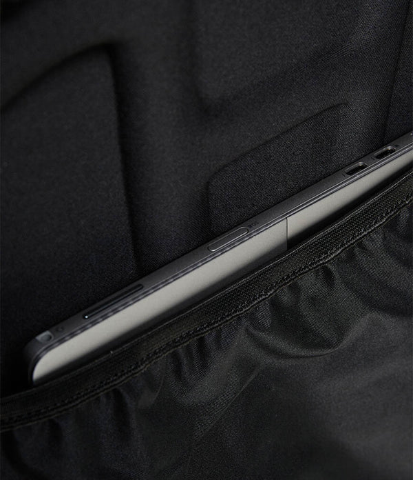 - Separates Laptopfach; seitliche Außentaschen: eine mit Reißverschluss, die andere aus Netz für die Wasserflasche; Vordertasche mit Organizer; Geheimfach