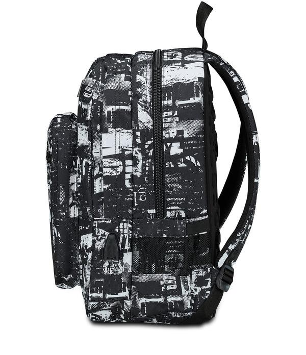 Alles dabei? Auch wenn doch noch was mitmuss, ist das kein Problem. Platz ist im Seven Freethink genug: mit einem Doppelfach für Bücher, Hefte oder auch für Wechselkleidung nach dem Training. Es gibt ein eigenes Fach für Notebook und Tablet, eine seitliche Außentasche für die Wasserflasche und eine Vordertasche mit Organizer, in der ein Kalender, Kopfhörer und kleinere Gegenstände gut aufgeräumt sind. Wenn du merkst, dass dein Handy Strom braucht, kann dir der Seven Freethink auch helfen: Mit dem USB-Stecker am Rucksack kannst du es unterwegs aufladen. Der stabile Boden sorgt dafür, dass der Freethink seine Form hält, auch wenn Du ihn richtig vollpackst. Die Schultergurt- und Rückenpolsterung machen Dir das Tragen angenehm.