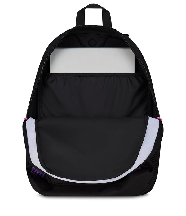 Laptopfach, Frontfach und seitliche Fächer für eine Trinkflasche.