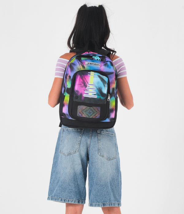 Hast du alles dabei? Du weißt ja, dass in dem doppelten Fach deines neuen Seven Freethink Rucksacks genug Platz für Bücher und Hefte ist, aber auch Wechselkleidung. Und er ist mit Led ausgestattet: Du kannst ihn über die App einstellen und deine Phantasie frei laufen lassen! Hast du den PC oder das Tablet im Innenfach verstaut? Und die Trinkflasche im Seitenfach? Gut! Jetzt kannst du den Bus zur Schule nehmen. Es ist ein gutes Stück bis zur Haltestelle, aber dank des bequemen Rückens und der Schultergurte ist der Freethink Rucksack sehr angenehm zu tragen.