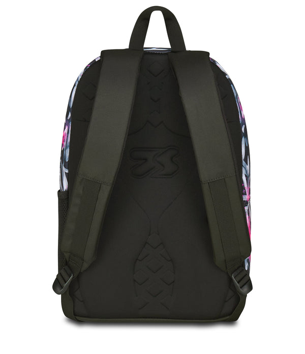 - Rucksack mit zwei Hauptfächern, das Frontfach kann abgenommen und gewendet werden. Eine Seite des Rucksacks ist einfarbig, die andere hat einen Allover-Print