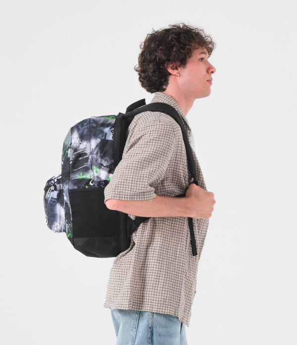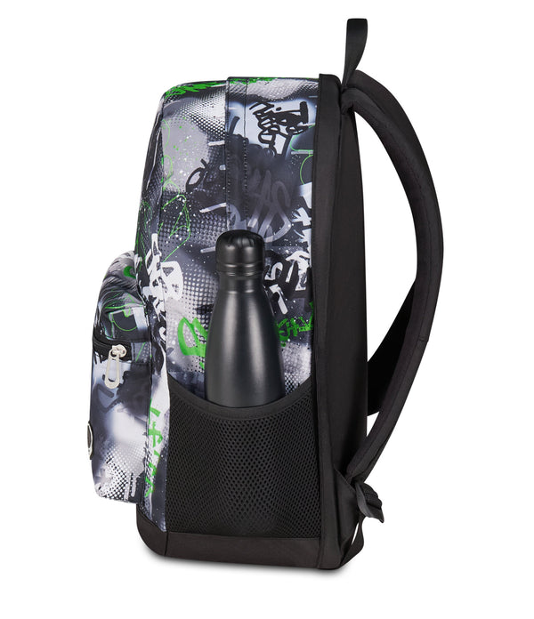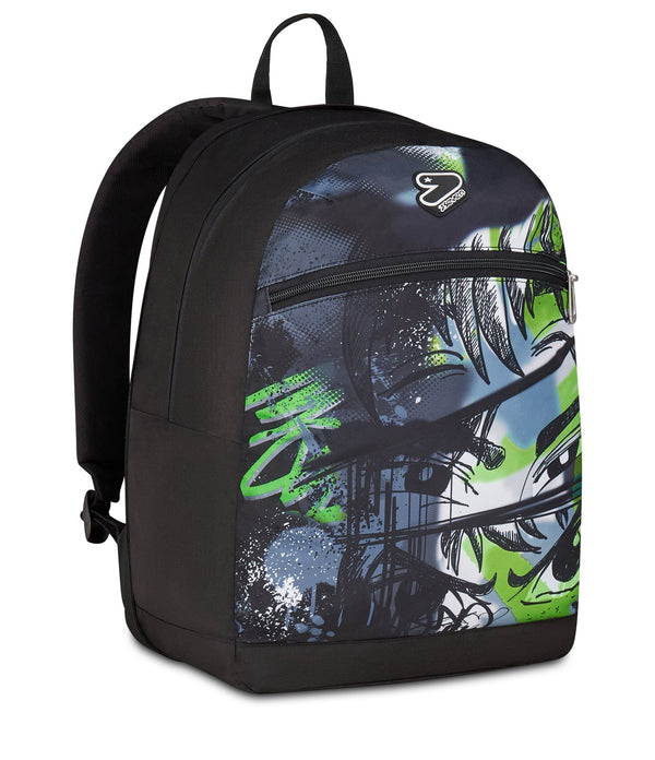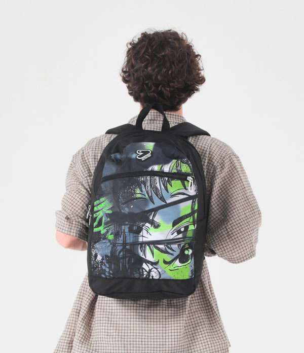 Der neue Wende-Rucksack The Double lässt dich jeden Tag in vollen Zügen leben. Eine Seite zeigt ein trendiges All-Over-Muster mit Anime-Bildern, während die andere Seite punkte mit einem einfarbigen Design. Du kannst den Rucksack jederzeit wenden, indem du die Rückenlehne abnimmst – egal, auf welcher Seite du ihn trägst, beide Seiten bieten gepolsterte Rücken- und Schultergurte für maximalen Tragekomfort. Zum Rucksack gehören außerdem Kopfhörer und Marker. Das Gewebe des Rucksacks besteht zu 100% aus recyceltem Polyester, das aus 29,5 PET-Flaschen gewonnen und GRS-zertifiziert ist.