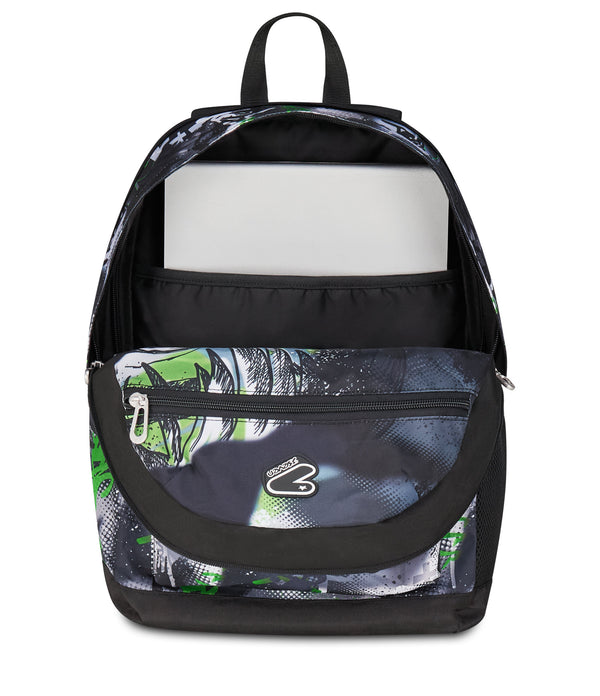 - Laptopfach, Frontfach (auf beiden Seiten), seitliches Trinkflaschenfach