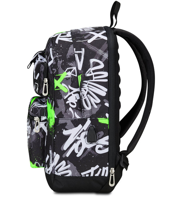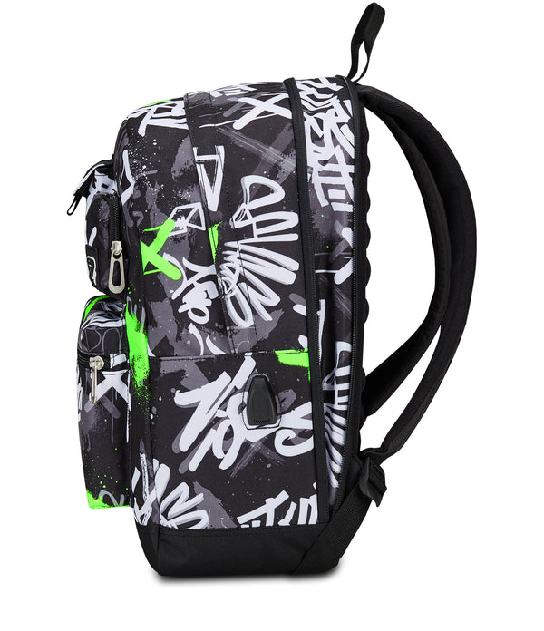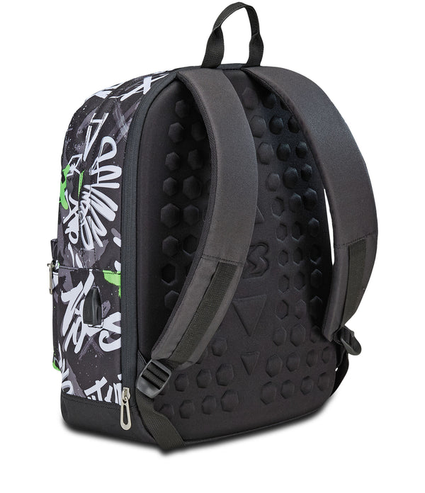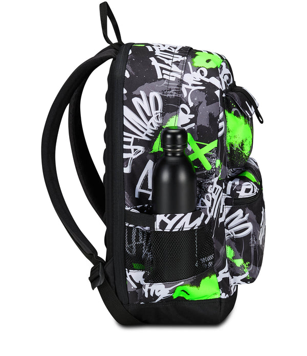 Für einen Nachmittag im Park oder eine Runde durch die Stad ist der Seven The Double Extensible Pro immer bequem und praktisch. Dank des seitlichen Reißverschlusses kannst du das Volumen sogar noch vergrößern, um mehr Platz zu haben. Laptop und Tablet kannst du in der Innentasche verstauen, und die Wasserflasche oder den Regenschirm in der Seitentasche. Wenn du und nur noch 10 Prozent Akkulaufzeit hast, kannst du es an die integrierte Powerbank anschließen, um es aufzuladen. Der Stretch Pro Backpack ist dank der gepolsterten, atmungsaktiven Schultergurte und des vorgeformten EVA-Rückens sehr angenehm zu tragen. Zu guter Letzt besteht das Gewebe des Rucksacks aus 21,5 PET-Flaschen, das auch GRS-zertifiziert ist.