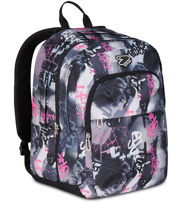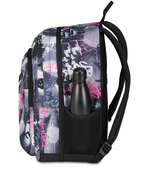 Mit dem Seven The Double Pro XXL Reversibile Detach Wende-Rucksack hast du drei Rucksäcke in einem: Eine Seite zeigt ein trendiges All-Over-Muster mit Anime-Bildern, während die andere Seite punkte mit einem farbigen Design, und dazu kommt noch einen kleinen abnehmbaren Rucksack. Zum Rucksack gehören außerdem ein Paar Kopfhörer. Das Gewebe des Rucksacks besteht zu 100% aus recyceltem Polyester, das aus 33,5 PET-Flaschen gewonnen und GRS-zertifiziert ist.