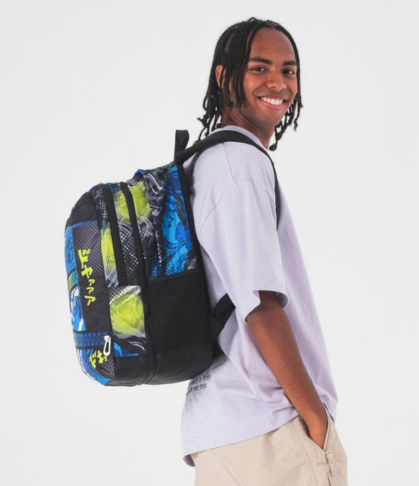 Mit dem Seven The Double Pro XXL Reversibile Detach Wende-Rucksack hast du drei Rucksäcke in einem: Eine Seite zeigt ein trendiges All-Over-Muster mit Anime-Bildern, während die andere Seite punkte mit einem farbigen Design, und dazu kommt noch einen kleinen abnehmbaren Rucksack. Zum Rucksack gehören außerdem ein Paar Kopfhörer. Das Gewebe des Rucksacks besteht zu 100% aus recyceltem Polyester, das aus 33,5 PET-Flaschen gewonnen und GRS-zertifiziert ist.