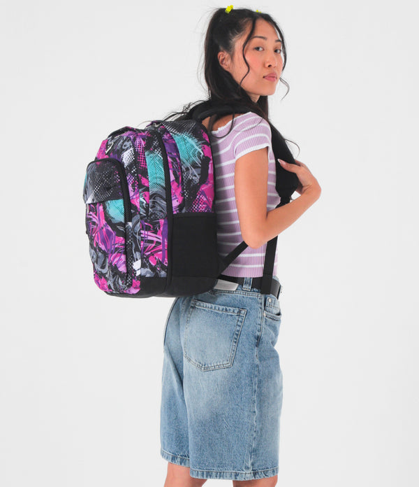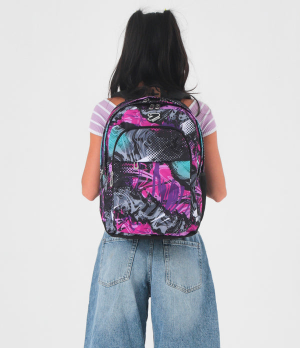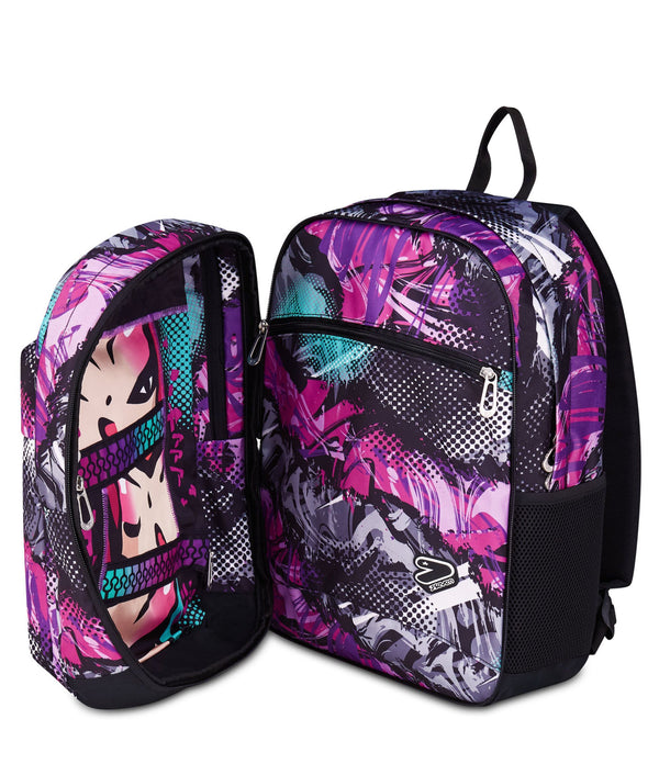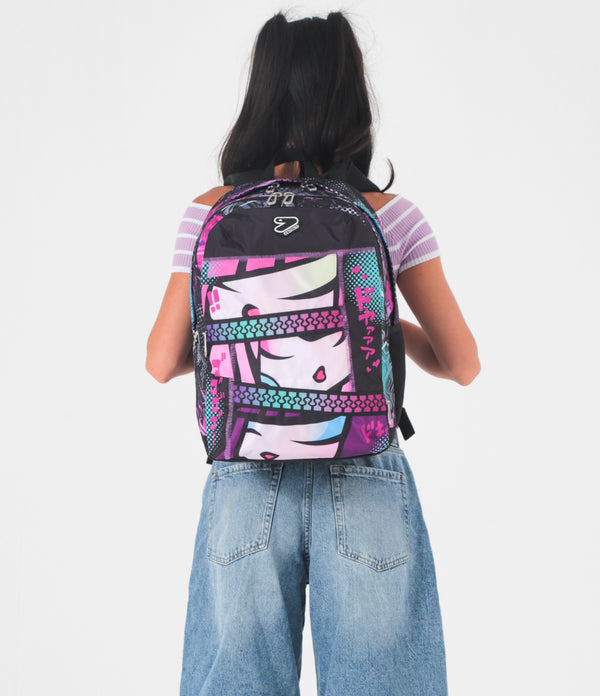 Mit dem Seven The Double Pro XXL Reversibile Detach Wende-Rucksack hast du drei Rucksäcke in einem: Eine Seite zeigt ein trendiges All-Over-Muster mit Anime-Bildern, während die andere Seite punkte mit einem farbigen Design, und dazu kommt noch einen kleinen abnehmbaren Rucksack. Zum Rucksack gehören außerdem ein Paar Kopfhörer. Das Gewebe des Rucksacks besteht zu 100% aus recyceltem Polyester, das aus 33,5 PET-Flaschen gewonnen und GRS-zertifiziert ist.