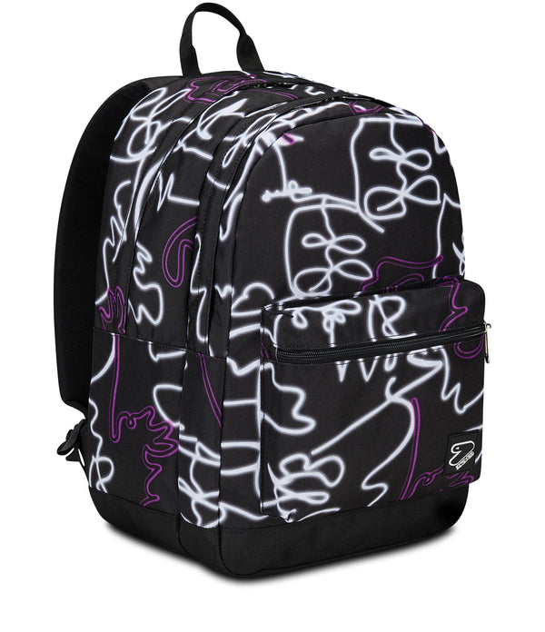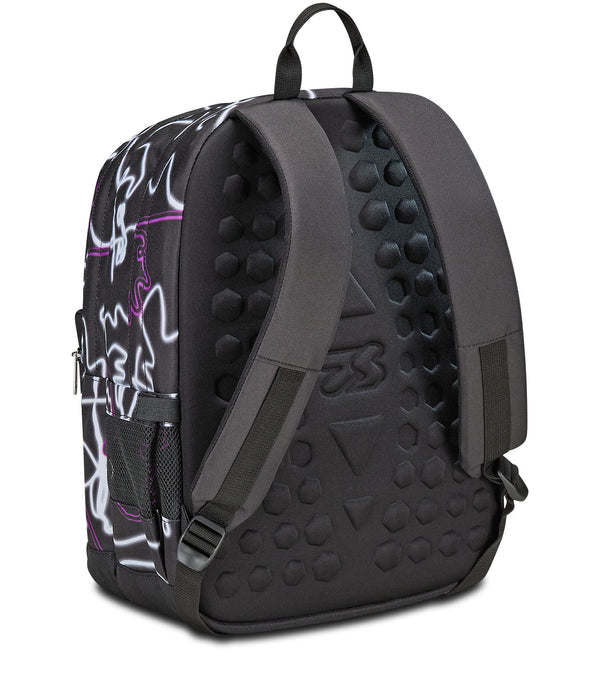 In dem Rucksack Pro XXL Seven The Double mit zwei geräumigen Fächern und reflektierendem Reißverschluss findet alles sein Platz. Das Tragen ist sehr angenehm dank des vorgeformten EVA-Rückens und der gepolsterten Schultergurte mit atmungsaktiven Einsätzen. Darüber hinaus gehören auch die Kopfhörer zum Rucksack und zu guter Letzt besteht das Gewebe des Rucksacks aus 27 PET-Flaschen, das auch GRS-zertifiziert ist.