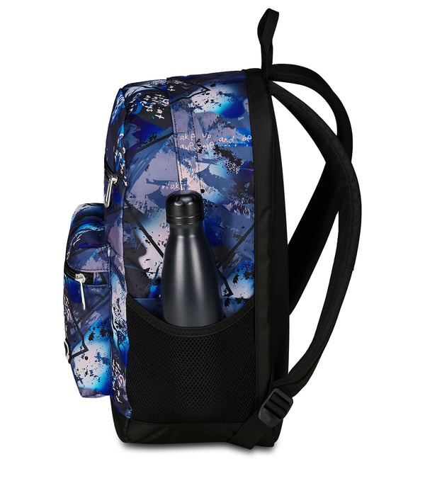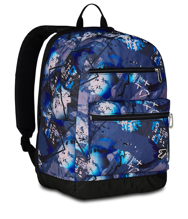 Mit dem Wende-Rucksack Seven The Double hast du zwei Rucksäcke in einem: Eine Seite zeigt ein trendiges All-Over-Muster mit einem reflektierenden Reißverschluss, während die andere Seite punkte mit einem einfarbigen Design. Du kannst den Rucksack jederzeit wenden, indem du die Rückenlehne abnimmst – egal, auf welcher Seite du ihn trägst, beide Seiten bieten gepolsterte Rücken- und Schultergurte für maximalen Tragekomfort. Darüber hinaus sind beide Seiten mit zwei praktischen Frontfächern ausgestattet, wobei die Muster-Seite zusätzlich ein seitliches Fach für eine Wasserflasche bietet. Zum Rucksack gehören außerdem Kopfhörer und Marker. Das Gewebe des Rucksacks besteht zu 100% aus recyceltem Polyester, das aus 29,5 PET-Flaschen gewonnen und GRS-zertifiziert ist.