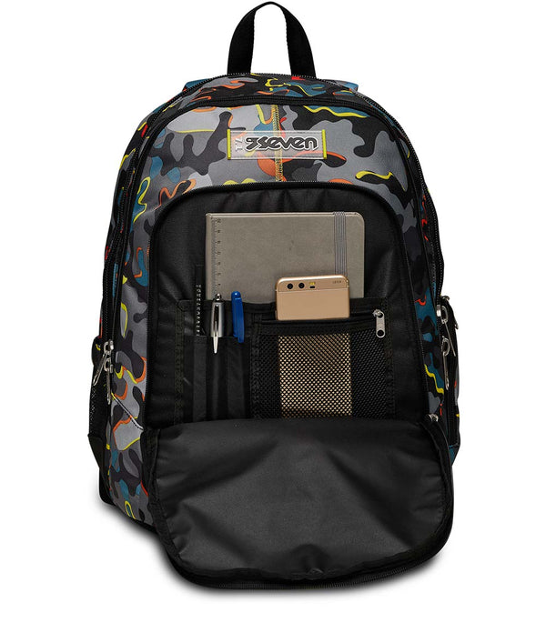 Schule, Sport, Freunde – du brauchst einiges, um gut durch den Tag zu kommen. Der Seven Advance Rucksack bietet Platz und eine schlaue Einteilung, um dich bestmöglich zu unterstützen: ein Doppelfach für Bücher, Hefte und mehr, auch für Wechselkleidung nach dem Training ist genügend Platz. Dazu kommen ein separates Fach für Laptop oder Tablet sowie die Außentasche mit Organizer, in der ein Kalender, Kopfhörer und kleinere Gegenstände gut aufgeräumt sind. Der Seven Advanced Rucksack hält seine Form, auch wenn Du ihn richtig vollpackst, dafür sorgt der stabile Boden. Die Schultergurt- und Rückenpolsterung machen Dir das Tragen angenehm.