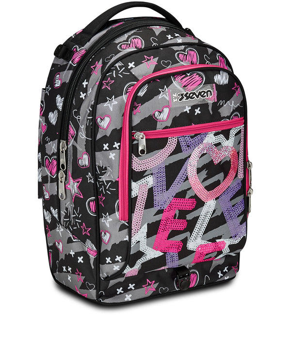 Der Seven Jack-2WD Trolley ist der Schulrucksack mit abnehmbarem Trolley. Jetzt wird nicht mehr getragen, sondern entspannt in die Schule gerollt. Das geht mit den 10-cm-Rädern besonders einfach. Der Rucksack selbst ist multifunktional ausgestattet mit viel Platz für Bücher, Hefte oder eine Wasserflasche. Die weiche Polsterung an den Schultergurten und am Rücken machen Dir das Tragen bequem. Der integrierte Boden sorgt für eine stabile Form, auch wenn der Rucksack voll ist.