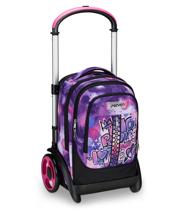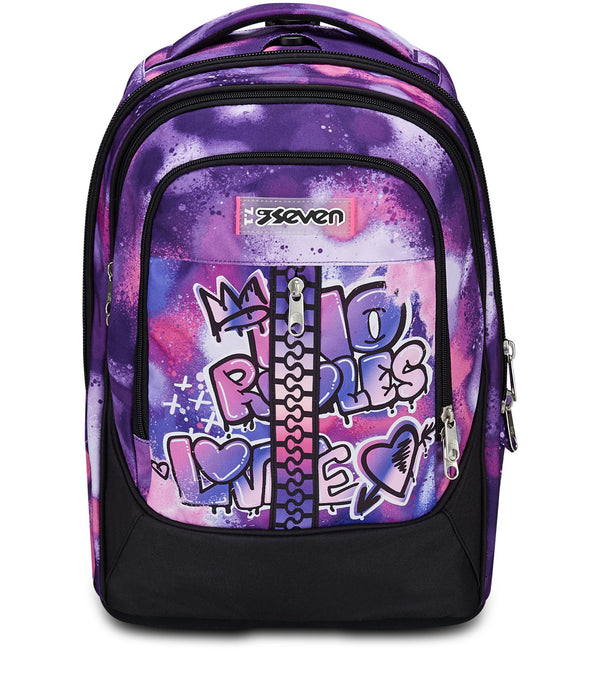 Der Seven Trolley Tyre ist der Schulrucksack mit abnehmbarem Trolley. Jetzt wird nicht mehr getragen, sondern entspannt in die Schule gerollt. Das geht mit den 17-cm-Rädern besonders einfach. Der Rucksack selbst ist multifunktional ausgestattet mit viel Platz für Bücher, Hefte oder eine Wasserflasche, die in der Innentasche Platz findet. Die weiche Polsterung an den Schultergurten und am Rücken machen Dir das Tragen bequem. Der integrierte Boden sorgt für eine stabile Form, auch wenn der Rucksack voll ist.