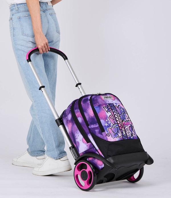 - Vielseitiger Trolley mit MAXI 17-cm-Rädern, höhenverstellbarem Griff, vorgeformtem Boden und verstärkten Ecken. Mit Crossover-System ausgestattet: Die Schultergurte können an die Stange festgelegt werden, um das Reiben am Boden zu vermieden. 3 Verwendungsmöglichkeiten: Als Trolley, als Rucksack mit Trolley-Einsatz, und als Rucksack, wenn er vollständig vom Trolley entfernt wird