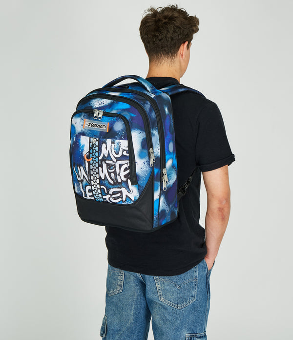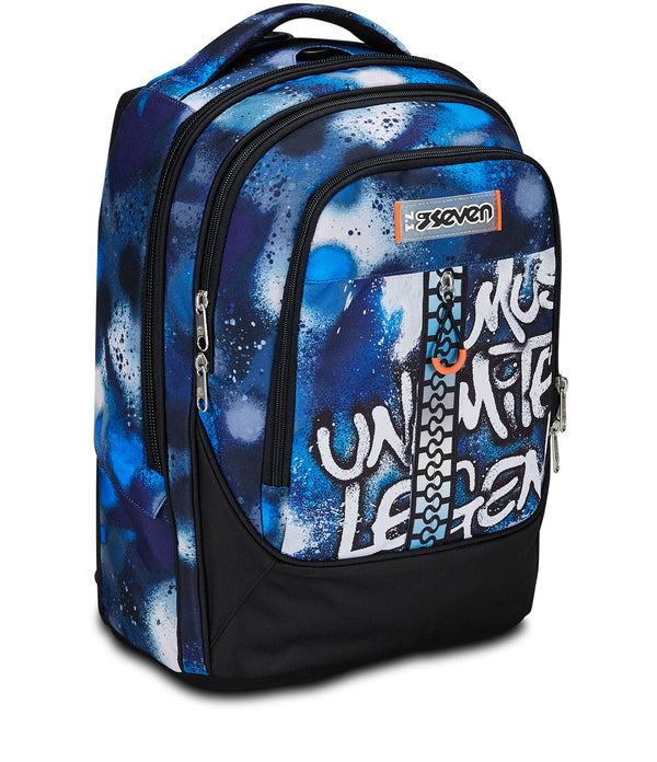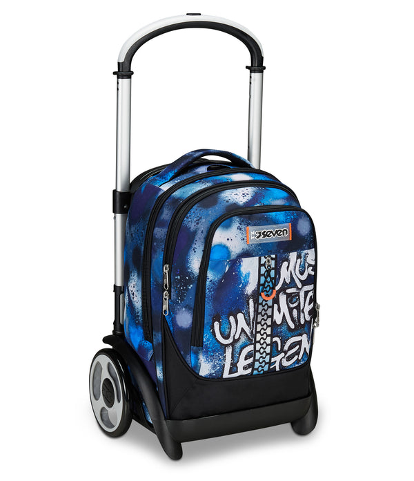 Der Seven Trolley Tyre ist der Schulrucksack mit abnehmbarem Trolley. Jetzt wird nicht mehr getragen, sondern entspannt in die Schule gerollt. Das geht mit den 17-cm-Rädern besonders einfach. Der Rucksack selbst ist multifunktional ausgestattet mit viel Platz für Bücher, Hefte oder eine Wasserflasche, die in der Innentasche Platz findet. Die weiche Polsterung an den Schultergurten und am Rücken machen Dir das Tragen bequem. Der integrierte Boden sorgt für eine stabile Form, auch wenn der Rucksack voll ist.