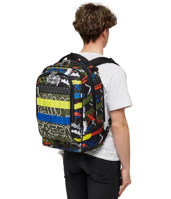 Der Seven Jack-3WD Trolley ist der Schulrucksack mit abnehmbarem Trolley. Jetzt wird nicht mehr getragen, sondern entspannt in die Schule gerollt. Der Rucksack selbst ist multifunktional ausgestattet mit viel Platz für Bücher, Hefte oder eine Wasserflasche, die in der Innentasche Platz findet. Die weiche Polsterung an den Schultergurten und am Rücken machen Dir das Tragen bequem. Der integrierte Boden sorgt für eine stabile Form, auch wenn der Rucksack voll ist.
