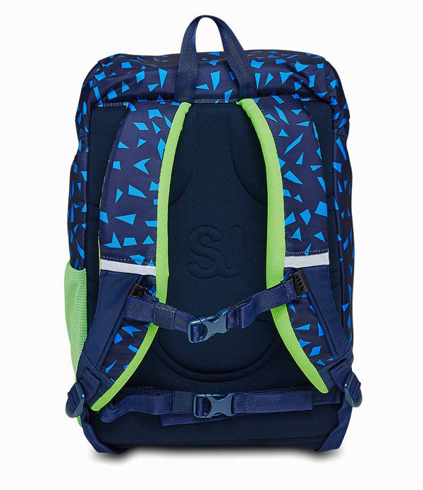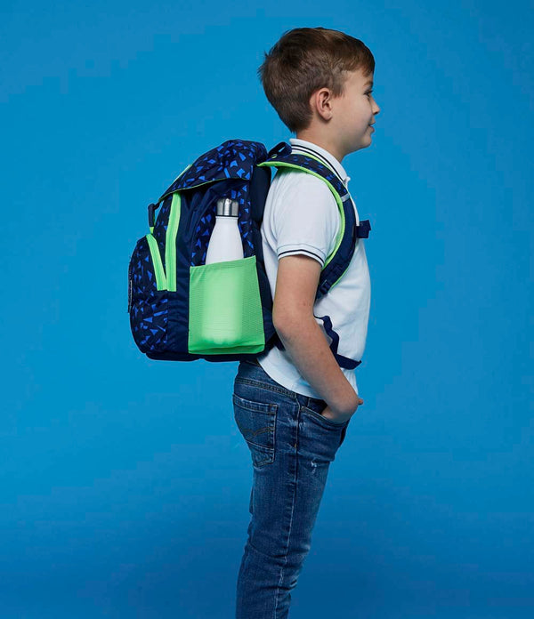 First loosen all the straps. Then put the satchel on your child. Adjust the length of the shoulder straps so that the top of the satchel is at the same height as the shoulders.