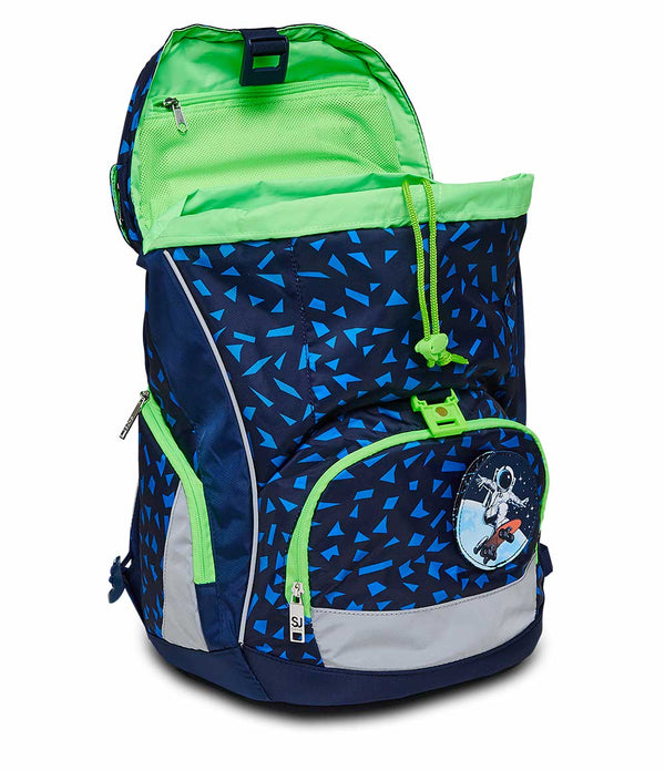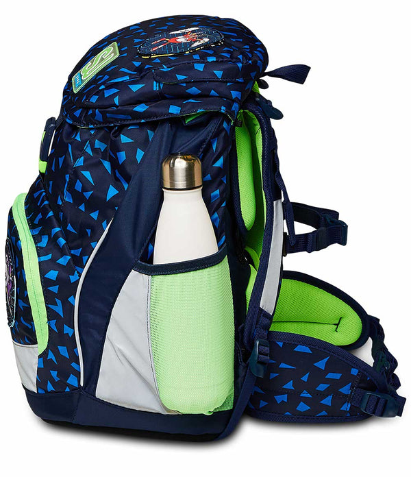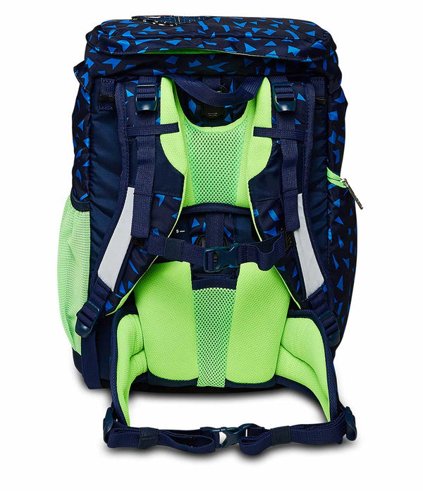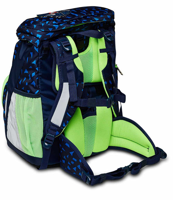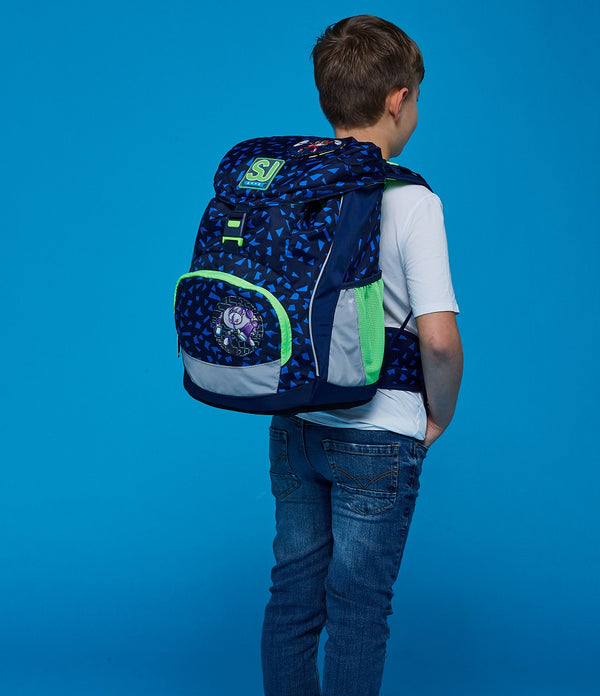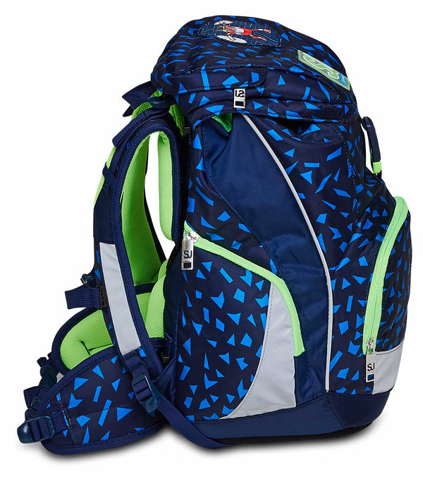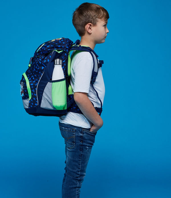 Our school backpacks use the same innovative carrying system that is used in trekking backpacks. It consists of a pre-shaped back section, adjustable shoulder straps and side hip straps that take the load, distribute it and shift the weight from the shoulders to the lumbar area.