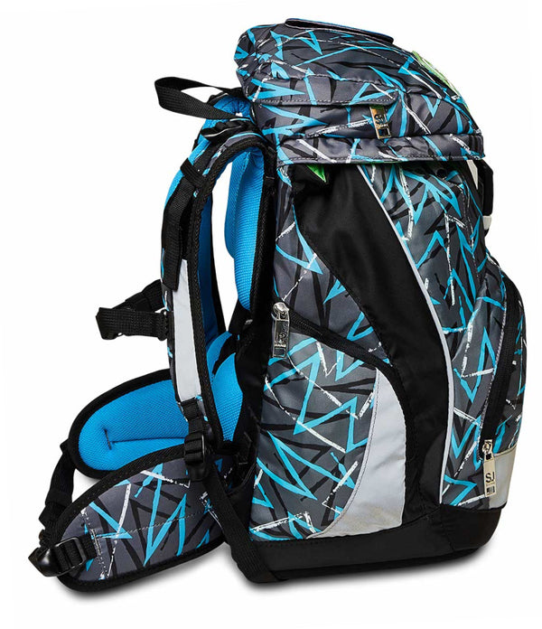 In unseren Schulränzen steckt das gleiche innovative Tragesystem, wie es auch in Trekkingrucksäcken zum Einsatz kommt. Es setzt sich zusammen aus einem vorgeformten Rückenteil, verstellbaren Schultergurten und seitlichen Hüftgurten, die die Last aufnehmen, verteilen und das Gewicht von den Schultern auf den Lendenbereich verlagern.