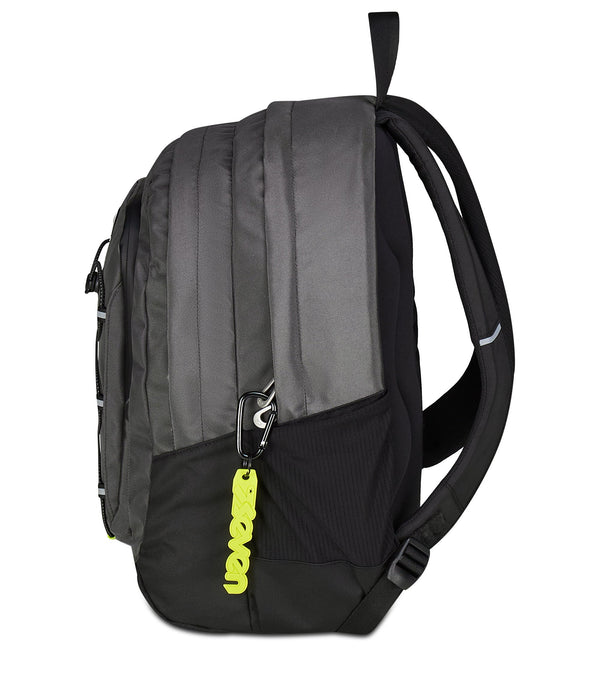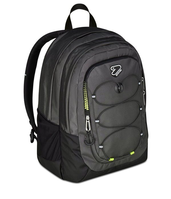 Stylish, practical, and designed for everyday convenience, the Tech backpack keeps you organized on the go. Featuring a spacious double compartment with an internal pocket for your laptop or tablet, it ensures everything has its place. Two side pockets hold water bottles, while the front pocket is perfect for your phone, earphones, and other small essentials. The front load compression system, combined with a preformed back panel and padded shoulder straps, delivers maximum comfort for all-day wear.