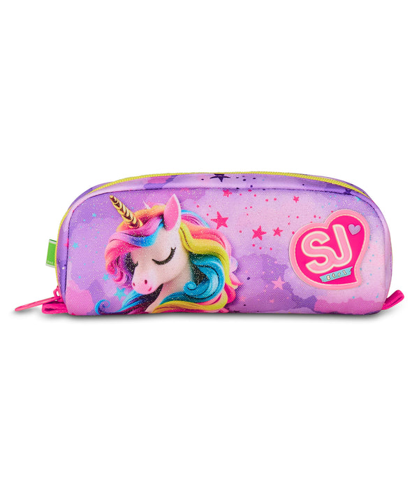 Hello! I’m the SJ Pencil Bag! I’m convenient to carry with you at all times and super easy to fill with all the essential school supplies! I have colourful graphics. Match me with an SJ Gang backpack or trolley!