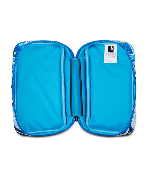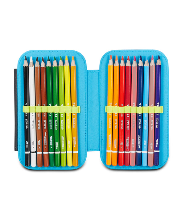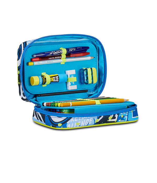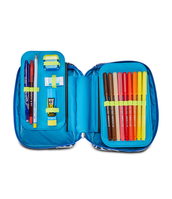 Hi! I’m the brand new Speed SJ Gang pencil case! Equipped with a single zipper and everything you need to best express your creativity, it is easy to set up and take down at your convenience. The boards with elastic band pen and pencil holders are completely removable, so you can wash it or put whatever you like into it. Comfortable, practical, versatile and colorful, you just have to match me with an SJ Gang backpack or a trolley.