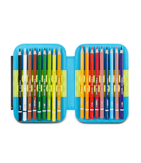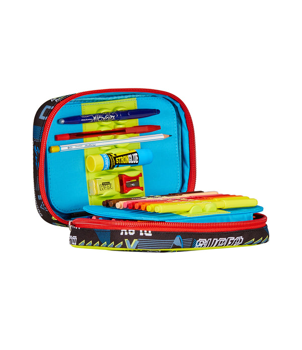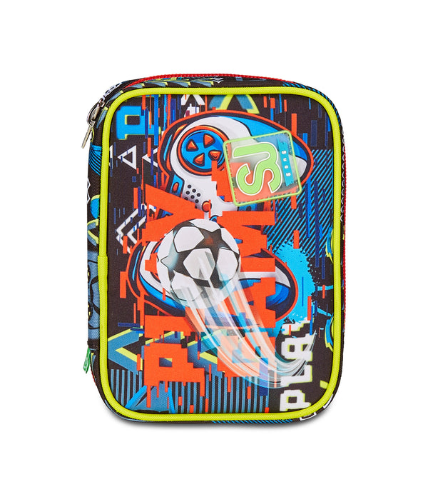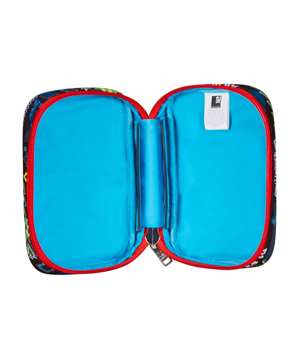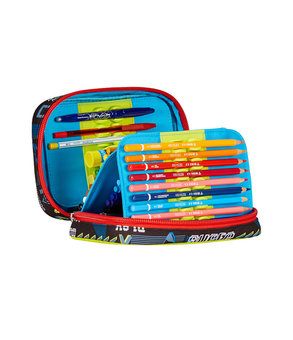 Hi! I’m the brand new Speed Pad SJ Gang pencil case! Equipped with a single maxi zipper and boards with interlocking system without elastic band, so you can easily fill it with the pens and pencils you will find in the special bag, it is easy to set up and take down at your convenience. The boards are completely removable so you can wash it or put whatever you like into it.