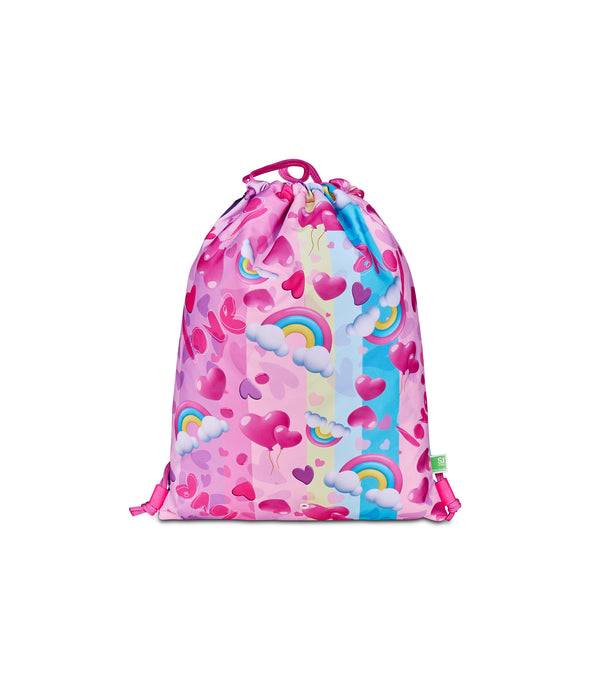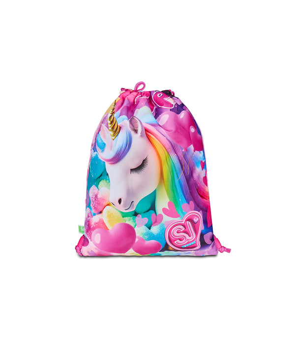 Hi! I’m the colorful SJ Gang bag, easy to carry everywhere you go and to fill with, thanks to the drawstring closure. Comfortable to bring a change of clothes or anything else you need for school and free time!