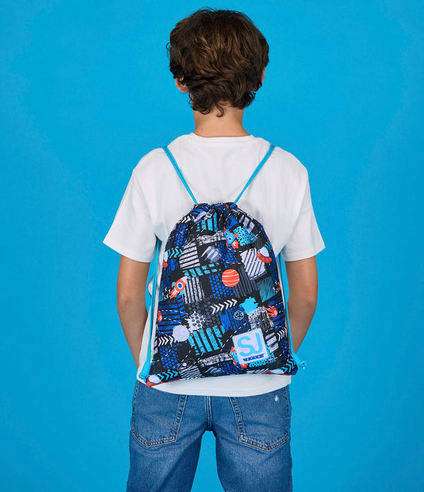 Hi! I’m the colorful SJ Gang bag, easy to carry everywhere you go and to fill with, thanks to the drawstring closure. Comfortable to bring a change of clothes or anything else you need for school and free time!