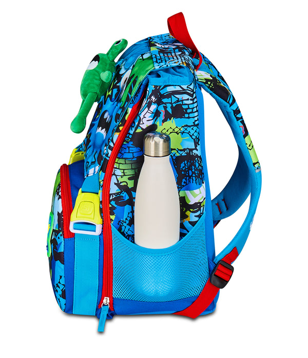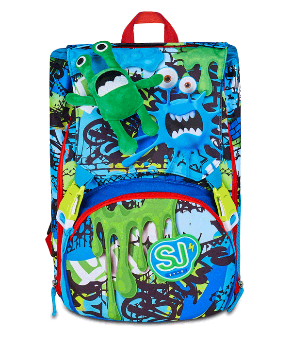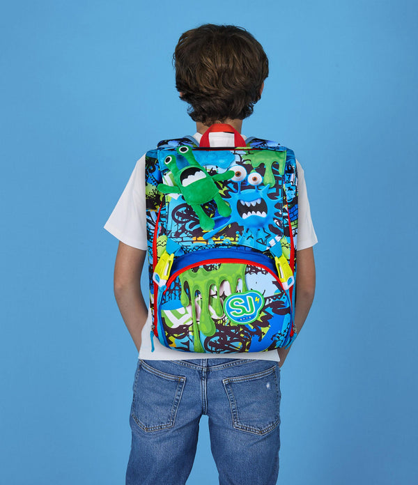 Hello! I am FANTASYS BOY, the SJ GANG stretchable backpack to go to school and play! Have fun with STRETCH EYES and LEGS of the PLUSH on the skate! I have a spacious double compartment, of which you can easily increase the capacity through the side zips to be able to optimally accommodate and distribute books, notebooks and everything you need for your day, also making use of the front pocket. In addition, they are really comfortable to wear on the shoulders, thanks to back and comfortable shoulder straps. In addition, the integrated bottom keeps my structure unchanged, ensuring the stability of the content even at full load.