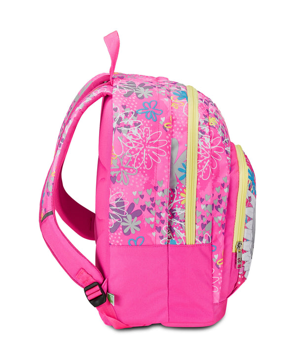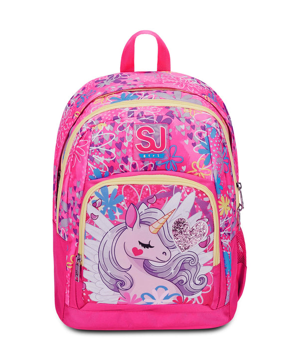 Hello! Are the amazing backpack Advanced SJ GANG ready to accompany you to school in a fun and carefree way! The back and shoulder straps that I am equipped with make me comfortable to wear on the shoulders, while the integrated bottom allows my structure to remain unchanged even at full load. In my large double compartment there is room for everything you need during the day and I also have a side pocket where you can put your canteen.