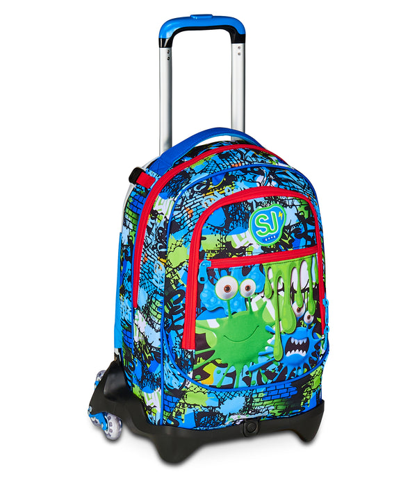 The SJ GANG Jack-3WD Trolley is a backpack with a detachable trolley featuring a 3-wheel system on each side. The backpack, which also has an internal water bottle pocket, is spacious and can hold everything you need—books, notebooks for school, or a change of clothes for training. The padded back panel and shoulder straps ensure comfort when worn as a backpack. When attached to the trolley, which is equipped with a double telescopic handle, corner protectors, and a reinforced bottom, it becomes easy to handle, stable, practical, and safe to pull along as a trolley