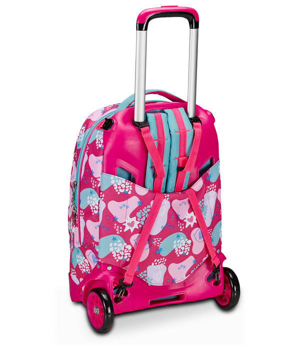The Trolley SJ Gang Jack 2 Wheels is a backpack with detachable trolley equipped with 10 cm wheels. The backpack is roomy, to be filled with what you need: books, notebooks for school, or change for training.. Backrest and padded shoulder straps also make the backpack comfortable to wear on the shoulders, while if you attach it to the trolley equipped with double telescopic bar, corner guards and reinforced bottom is handy, stable, practical and safe to drag as a trolley.