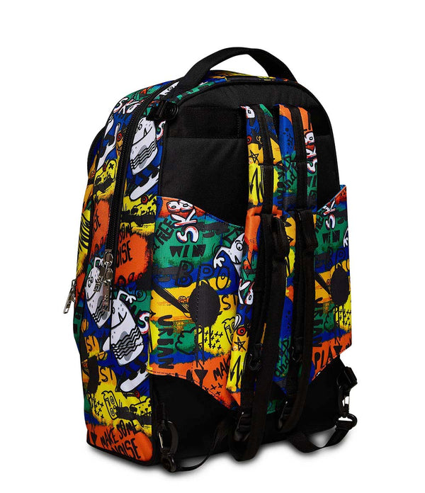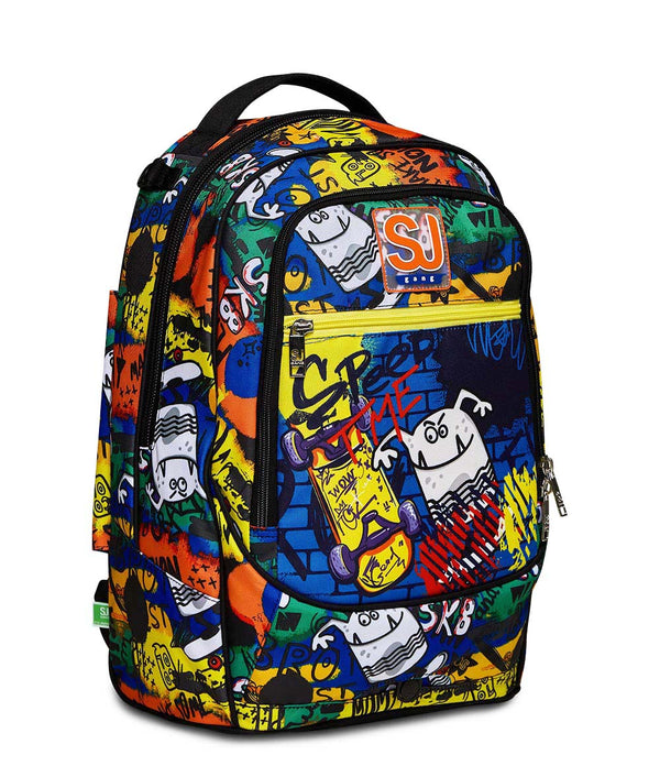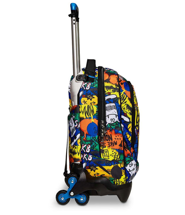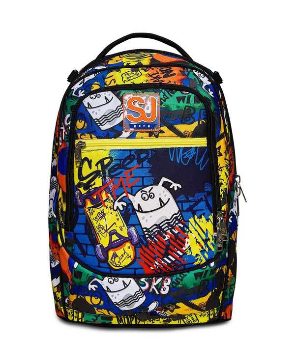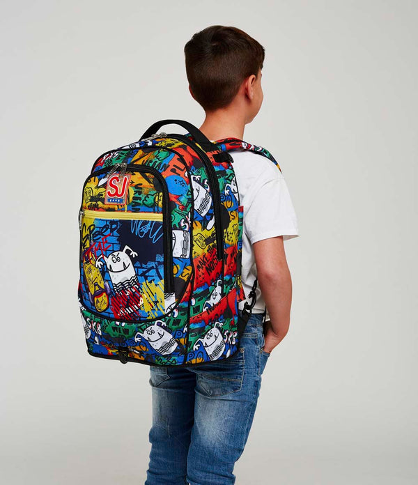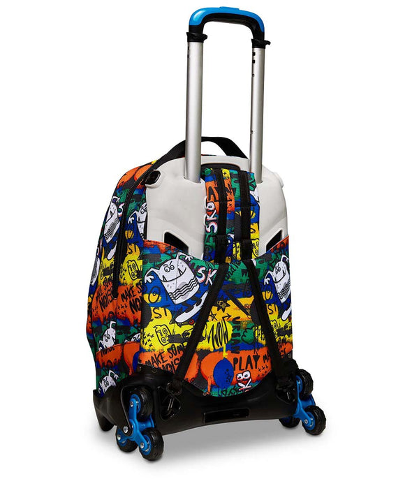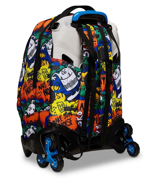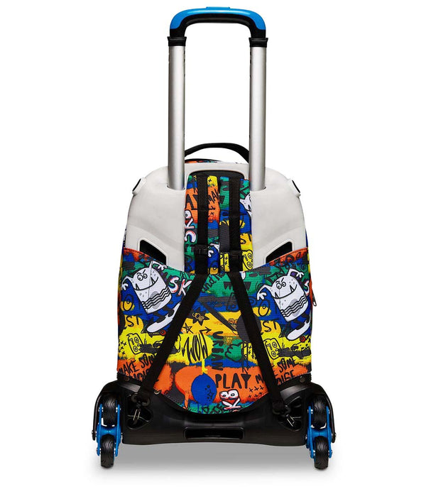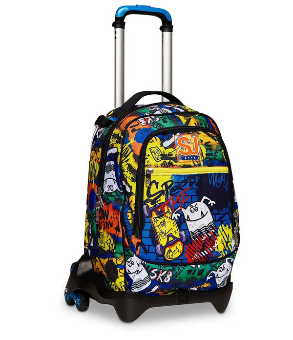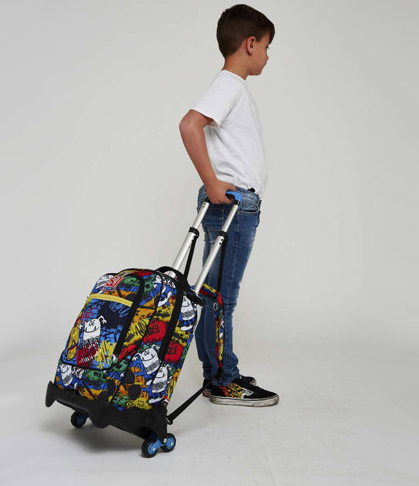 Hi there! I’m the amazing backpack with detachable trolley from SJ GANG! I’m colourful, multifunctional, extremely spacious and equipped with front pocket: you can put inside books, notebooks and everything you need for your day at school and your free time. Last but not least, the shoulder straps are padded and comfortable to wear as is the back panel with integrated bottom to ensure that the shape of the backpack stays unaltered, even when fully loaded. But if you prefer to carry your backpack to school you can easily use the trolley with three 10 cm wheels per side, telescopic trolley handle and protections at the corners.