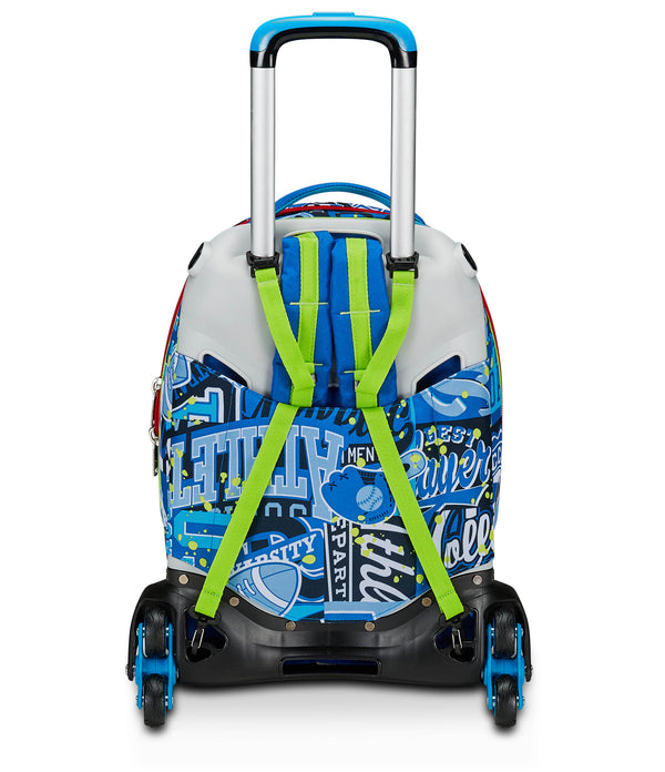 The Trolley SJ Gang Jack 3 Wheels is a backpack with a detachable trolley equipped with a system with 3 wheels per side. The backpack is roomy, to fill with what you need: books, notebooks for school, or change for training. Backrest and padded shoulder straps also make the backpack comfortable to wear on the shoulders, while if you attach it to the trolley equipped with double telescopic bar, corner guards and reinforced bottom is handy, stable, practical and safe to drag as a trolley.