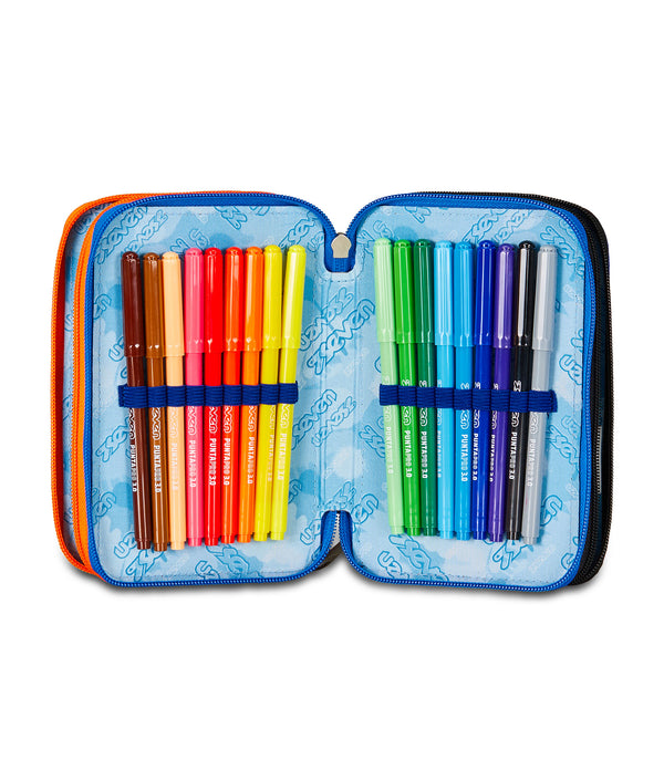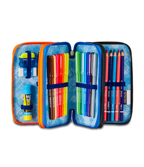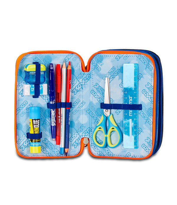 The Seven 3 zipper compartments pencil case is equipped with everything you need for school. All you have to do is to match it with a Seven backpack or trolley.