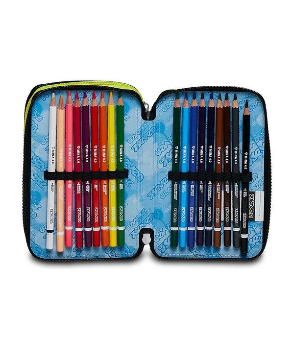 The Seven Round Plus pen holder is equipped with elastic band pen holders and a small zipped pocket to keep your school supplies in order. All you have to do is to match it with a Seven backpack or trolley.