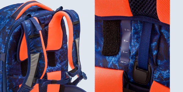 In unseren Schulrucksäcken findest du das gleiche innovative Tragesystem, wie es auch in Trekkingrucksäcken zum Einsatz kommt. Es setzt sich zusammen aus einem vorgeformten Rückenteil, verstellbaren Schultergurten und seitlichen Hüftgurten, die die Last aufnehmen, verteilen und das Gewicht von den Schultern auf den Lendenbereich verlagern. Seven Uptown Twice ist ein Schulrucksack, der sich nicht nur deiner Größe sondern auch deinem Körperbau anpasst.