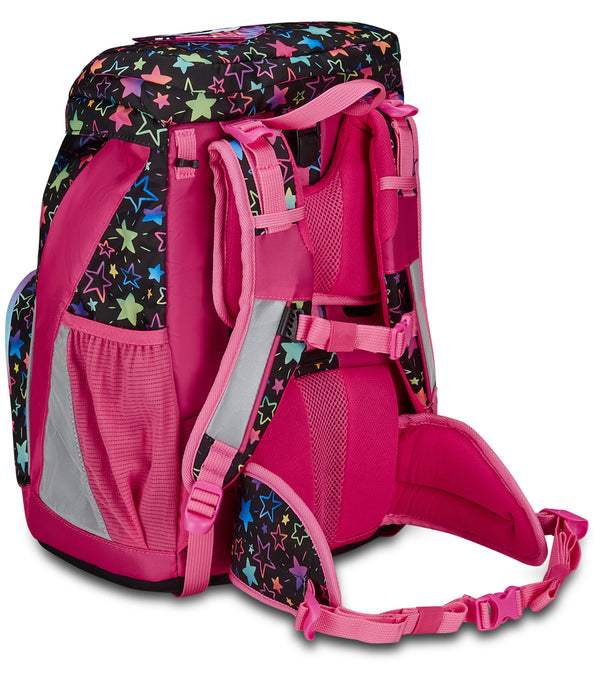 Starke Fakten sprechen für den Updown Soft von SJ GANG: Ergonomischer Schulrucksack mit dem Gütesiegel des Instituts für Gesundheit und Ergonomie (IGR). Innovatives Einstellsystem an den Schultergurten für Körpergrößen von XS bis L. Verstellbare Hüft- und Brustgurte. Erweiterbarer Innenraum. Aus 100% recyceltem Gewebe hergestellt. Ergonomisches Design aus Italien.