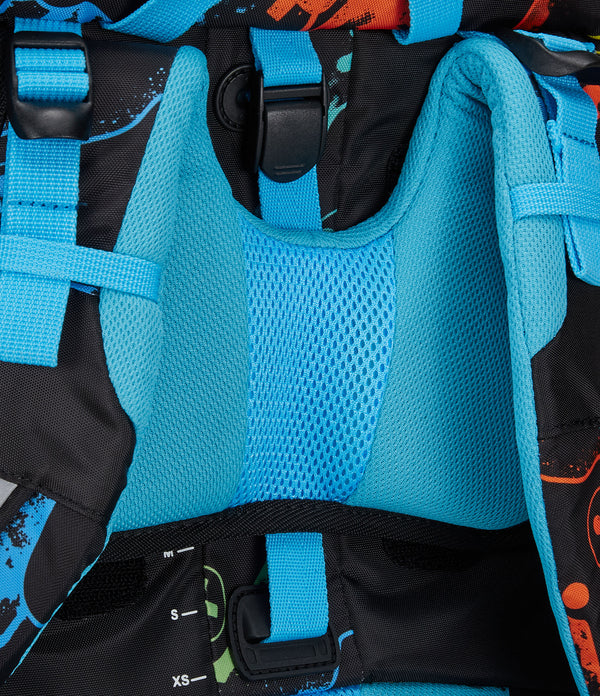 - Ergonomisch gepolsterte Schultergurte mit verstellbarem und abnehmbarem Brustgurt.